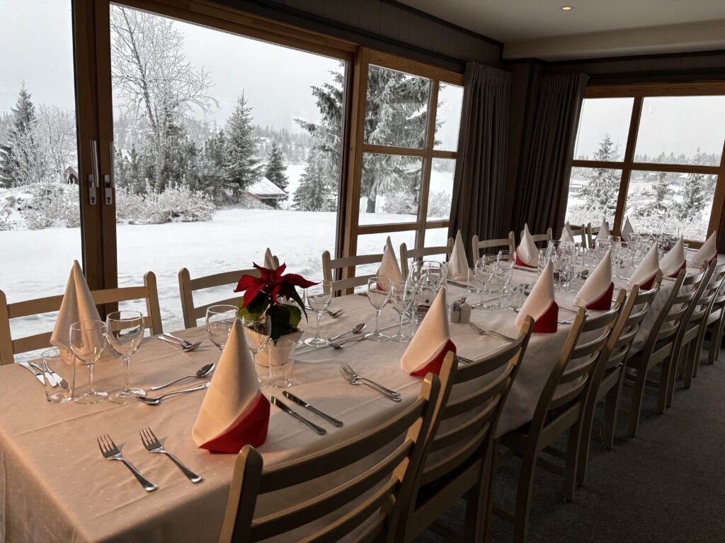 Bord må bookes innen kl. 17:00, middag serveres kl. 18:30.